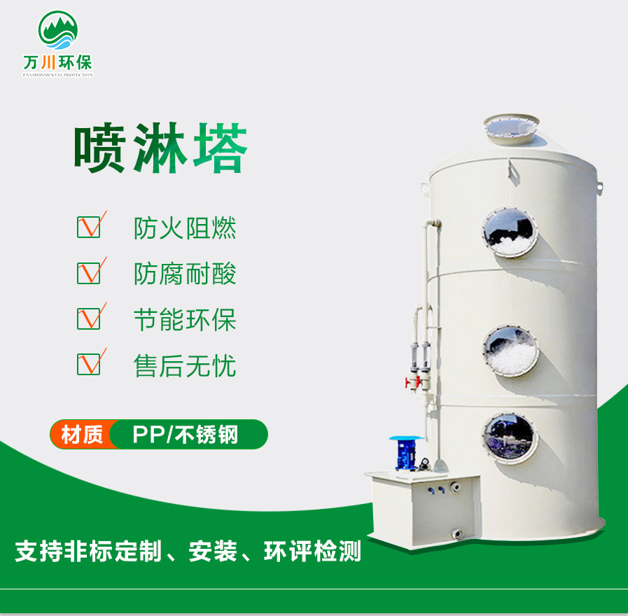 噴淋塔(俗稱:水淋塔)是一種處理煙塵廢氣的濕式環保設備,可適用于發電廠燃燒煙塵、鋼鐵廠、鍋爐燃燒、垃圾燃燒等煙塵廢氣處理,這類的煙氣粉塵容易溶于水,噴淋塔是處理這類煙氣粉塵的不二之選。煙氣粉塵從塔底進入塔內,塔內有填料支撐板,噴淋塔從塔頂噴出液體,液體均勻的分布在塔內和污染物充分接觸,達到凈化的效果,最后塔頂排出。