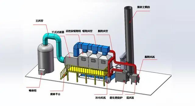 萬川環保涂裝車間VOCs廢氣治理:全面解決方案與創新技術行業廢氣特性分析在工業涂裝車間,廢氣污染主要來源于噴漆、揮發和烘干三大工序。根據具體工況可采用沸石轉輪吸附濃縮技術、蓄熱式熱力燃燒技術、催化燃燒、活性炭吸附等處理方法